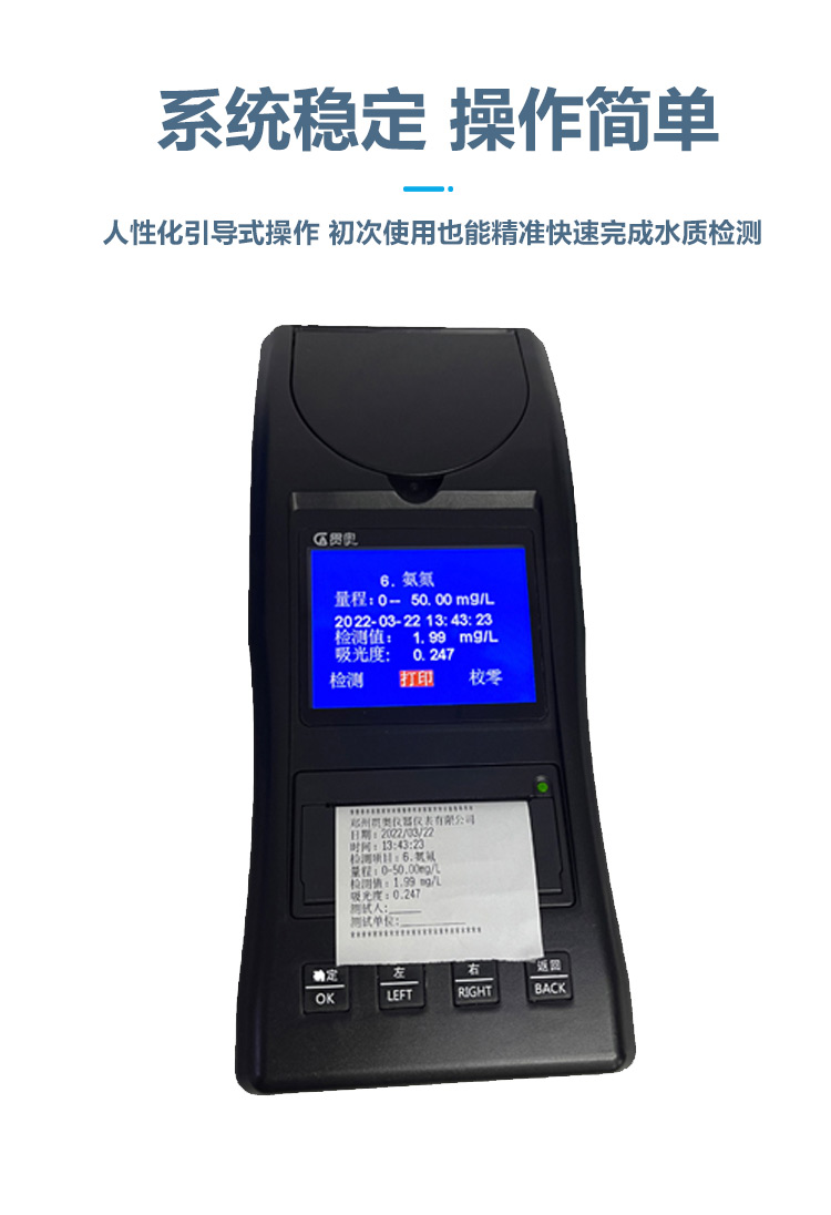 氮素類水質(zhì)專用檢測儀可用于測定水中不同形態(tài)的氮:硝酸鹽氮、亞硝酸鹽氮、氨氮等參數(shù)。本儀器接受定制,用戶可根據(jù)需求定制所需的參數(shù)。