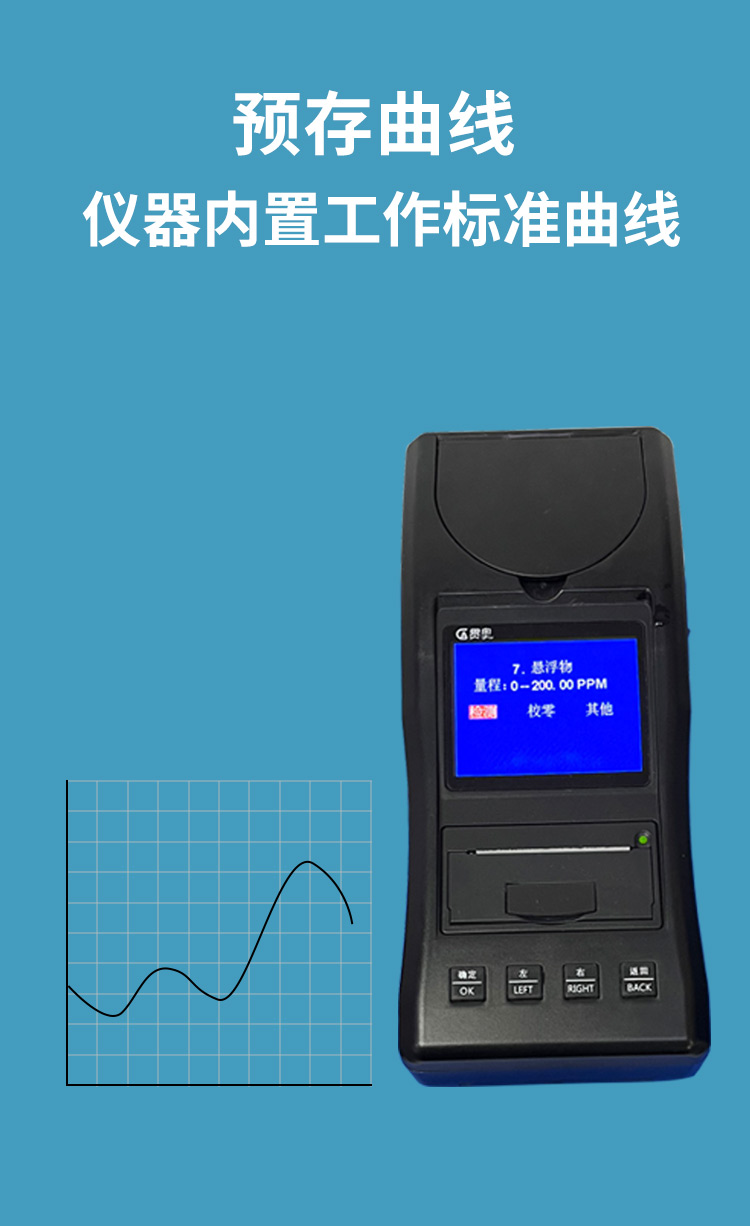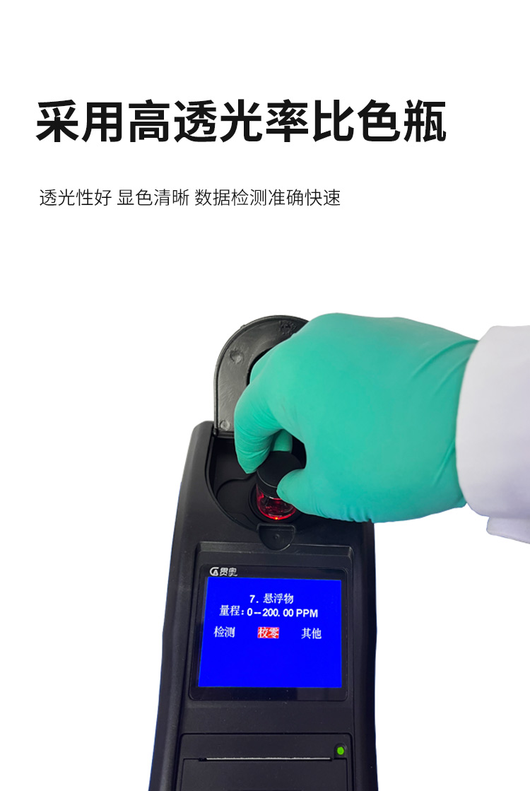 懸浮物水質(zhì)檢測儀可快速準(zhǔn)確測定地表水、地下水、城市污水及工業(yè)廢水中懸浮物指標(biāo),濃度直讀;可廣泛用于水廠、食品、化工、冶金、環(huán)保及制藥行業(yè)等部門。儀器是由單個的固定波長固定用途的分光光度計糅合而成的,采用分光光度法原理對各參數(shù)進(jìn)行測量,在儀器中建立不同參數(shù)的濃度顯色程度與吸光度的線性曲線,儀器通過對顏色的辨別,得出被測水樣的濃度。本儀器采用全中文菜單,操作簡單易懂,使用方便快速測量準(zhǔn)確度高。